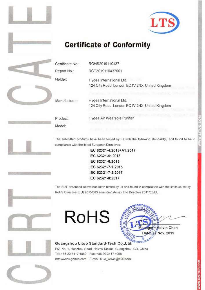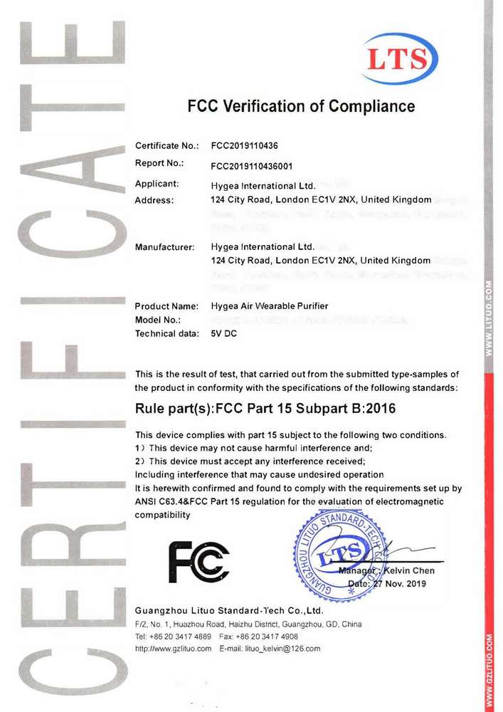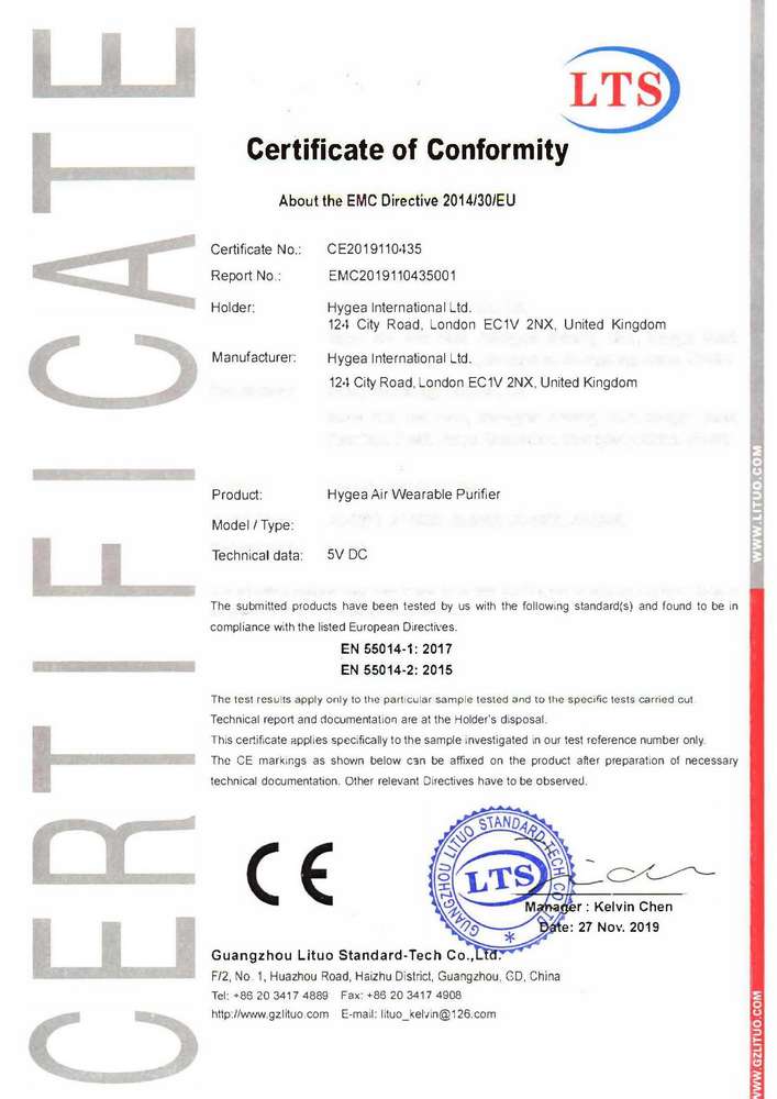 Преносимият пречиствател на въздух „Hygea Air“ ефективно елиминира до 83.66% от вирусите и бактериите в областта около вашата зона на дишане, генерирайки до 33 милиона аниони на кубичен сантиметър. В момента това е най-мощният мобилен йонизатор на пазара, който можете да носите като часовник или колие. Той също така успешно пречиства въздуха от фини прахови частици, смог, неприятни миризми и цигарен дим. Помага ви да подобрите концентрацията си, намалява стреса и умората и може да предпази от астма, алергии и главоболие. Наличен е в два стилни цвята – бял и черен. Гаранция: 2 години.