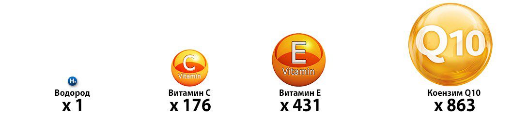 ВОДОРОДЪТ Е НАЙ-МАЛКИЯТ И НАЙ-МОЩЕН антиоксидант, който единствен може да навлезе в тъканите и кръвосните съдове, дори и те да са затлачени. Неговите НАНО МОЛЕКУЛИ единствени могат да преминат през клетъчната мембрана, така че да неутрализират свободните радикали в самите клетки. За по-нагледно, ето сравнение между големината на молекулата на ВОДОРОДА и едни от най-известните антиоксиданти като Вит.С, Вит.Е и Q10: